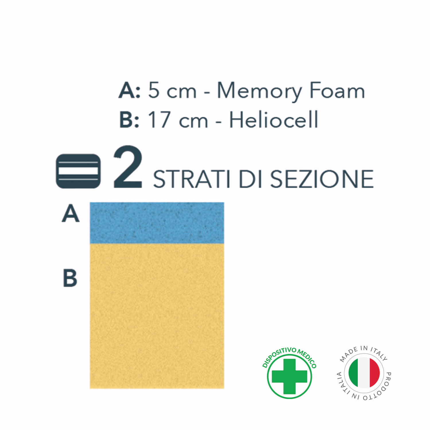 COMPOSIZIONE: Non contiene additivi chimici nocivi. Materiali con portanze differenziate, Heliocell e Memory Foam