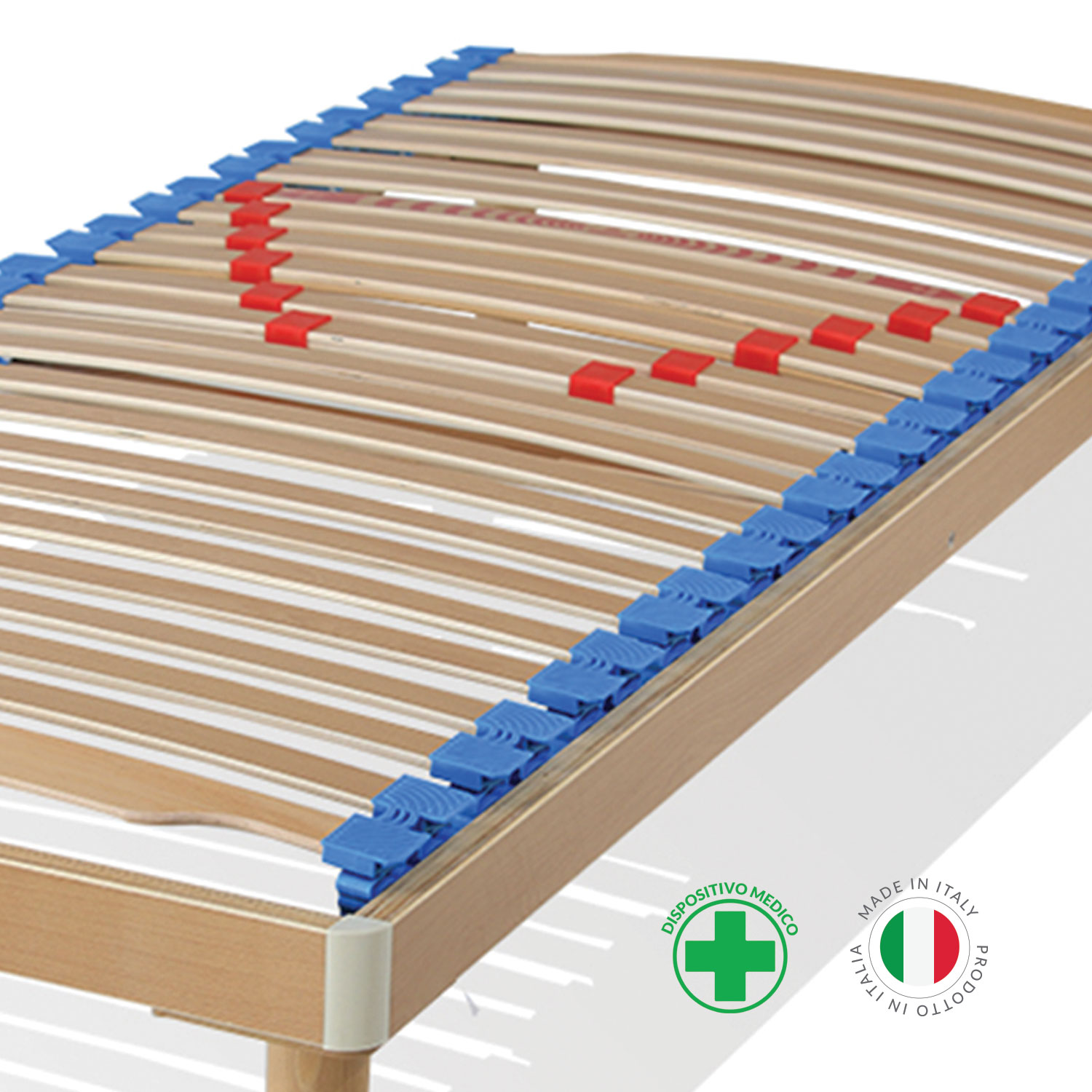 Le doghe sono realizzate in multistrato di faggio curvato a vapore, permettendo elasticità e robustezza senza deformarsi. Lo spessore delle doghe varia in base alla larghezza della rete, consentendo, così, di avere la base sempre omogenea e la massima funzionalità.